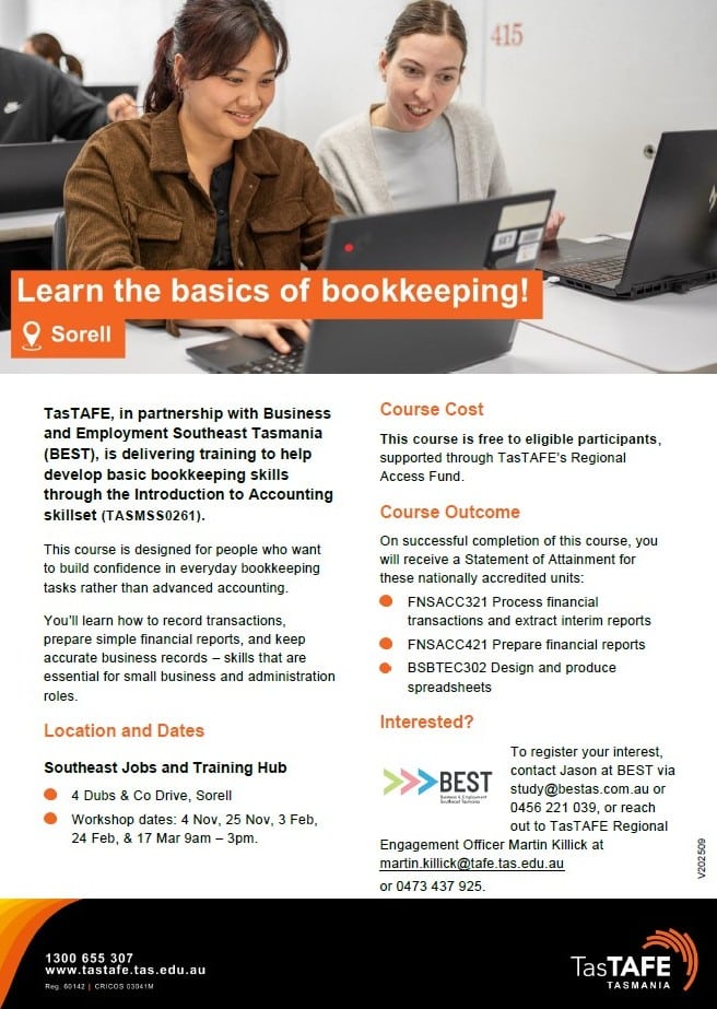 This introductory bookkeeping course builds confidence in everyday financial tasks by teaching participants how to record transactions, prepare simple financial reports, and maintain accurate business records using foundational accounting and spreadsheet skills.